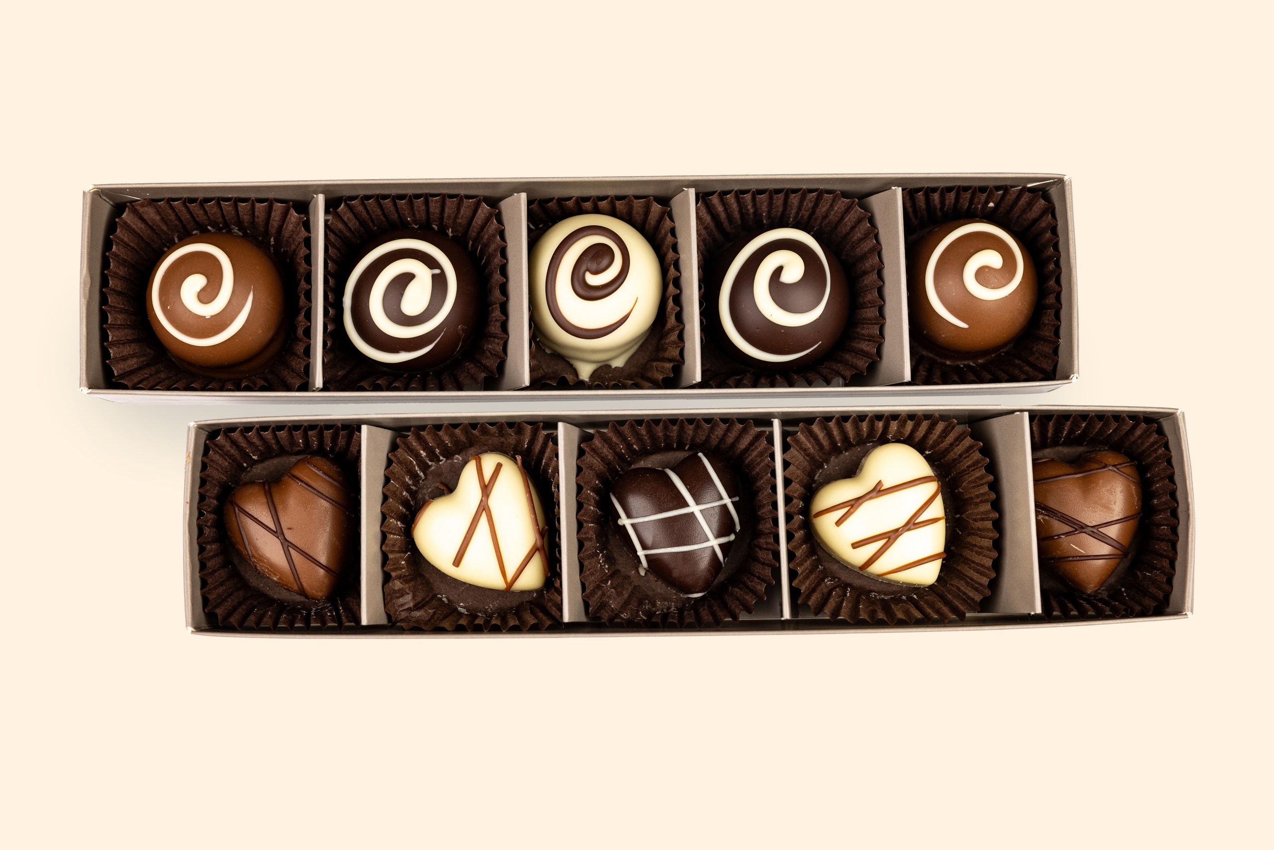 Cutie 10 praline ciocolată belgiană – Duo Lila & Blue (145g)