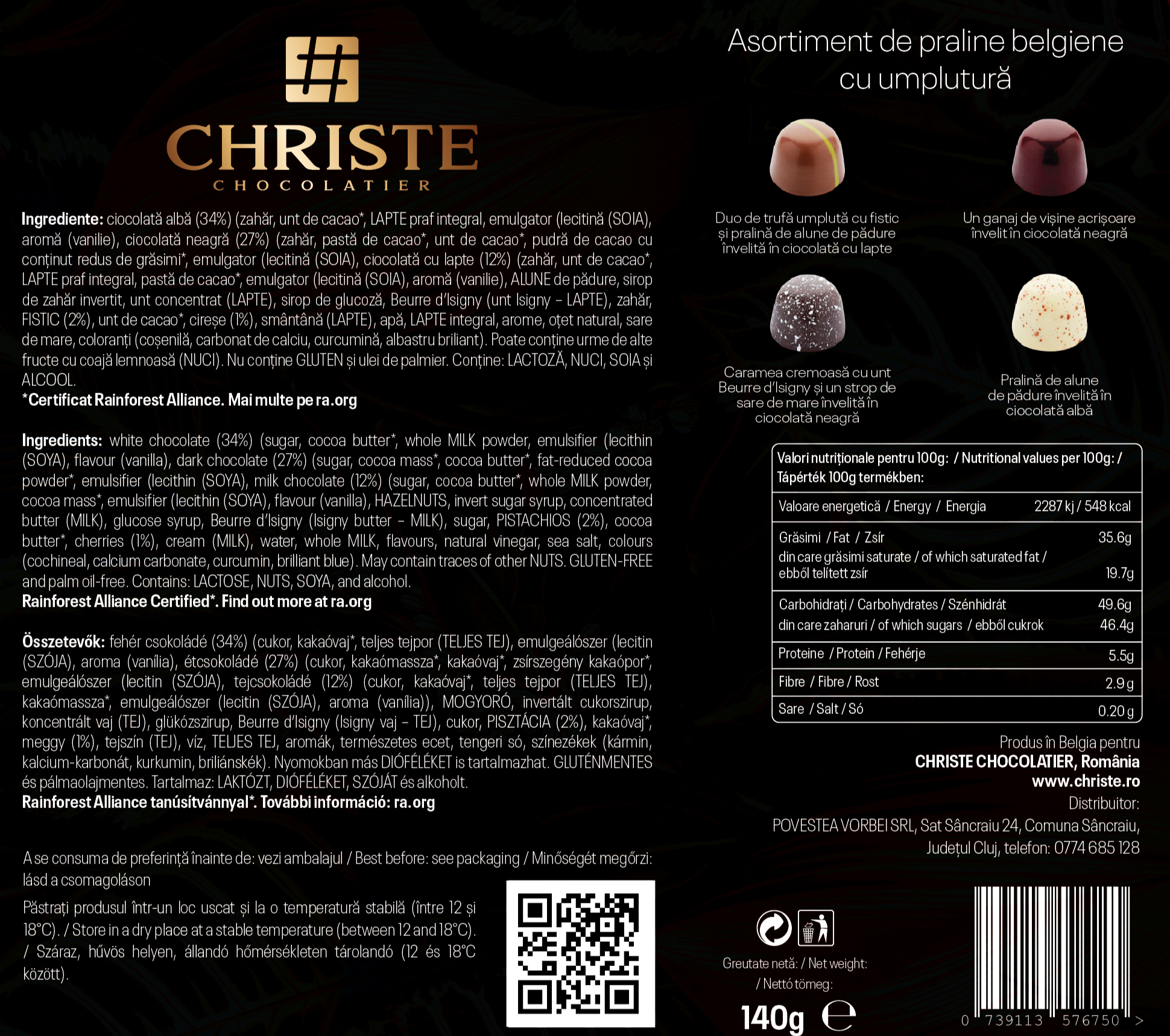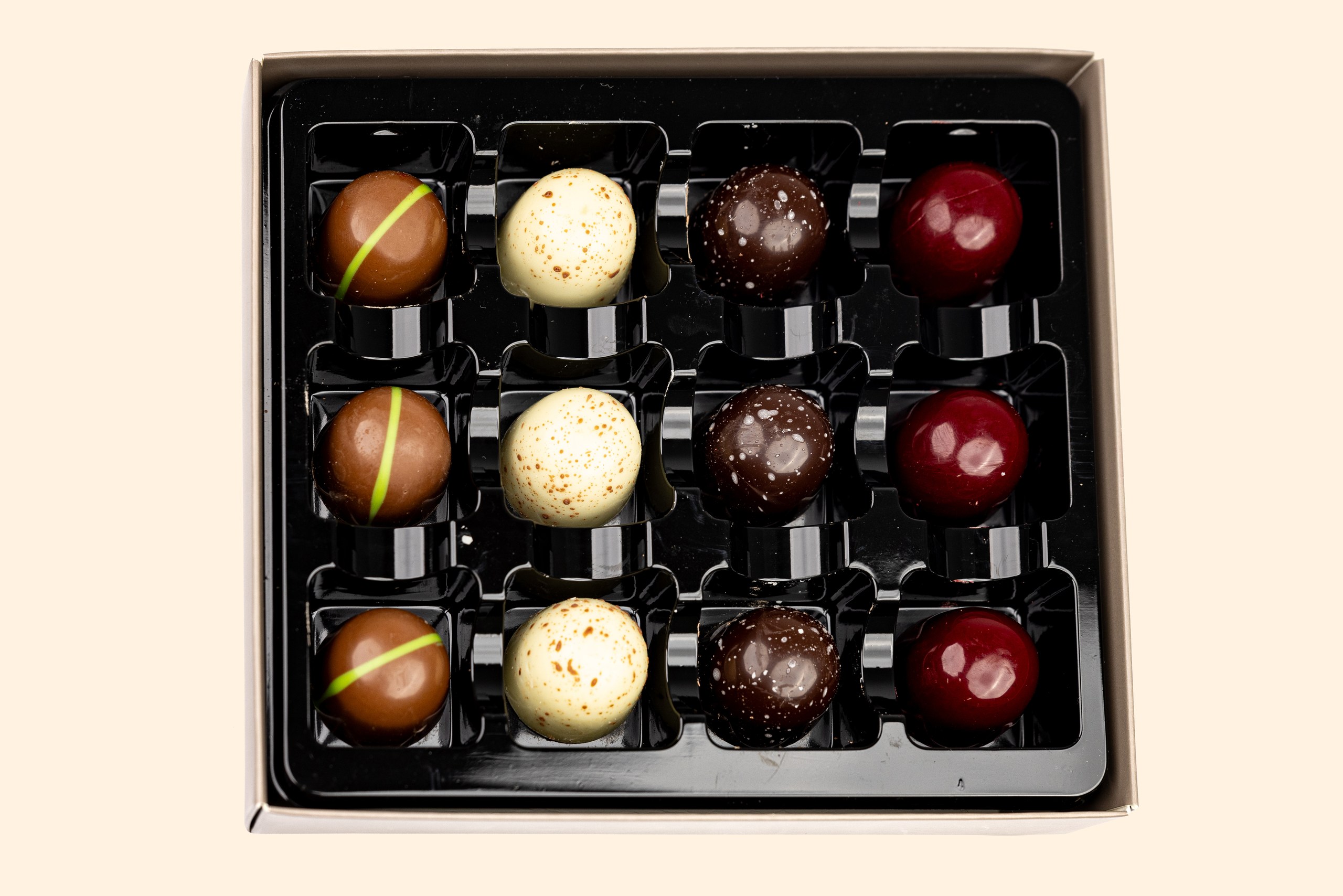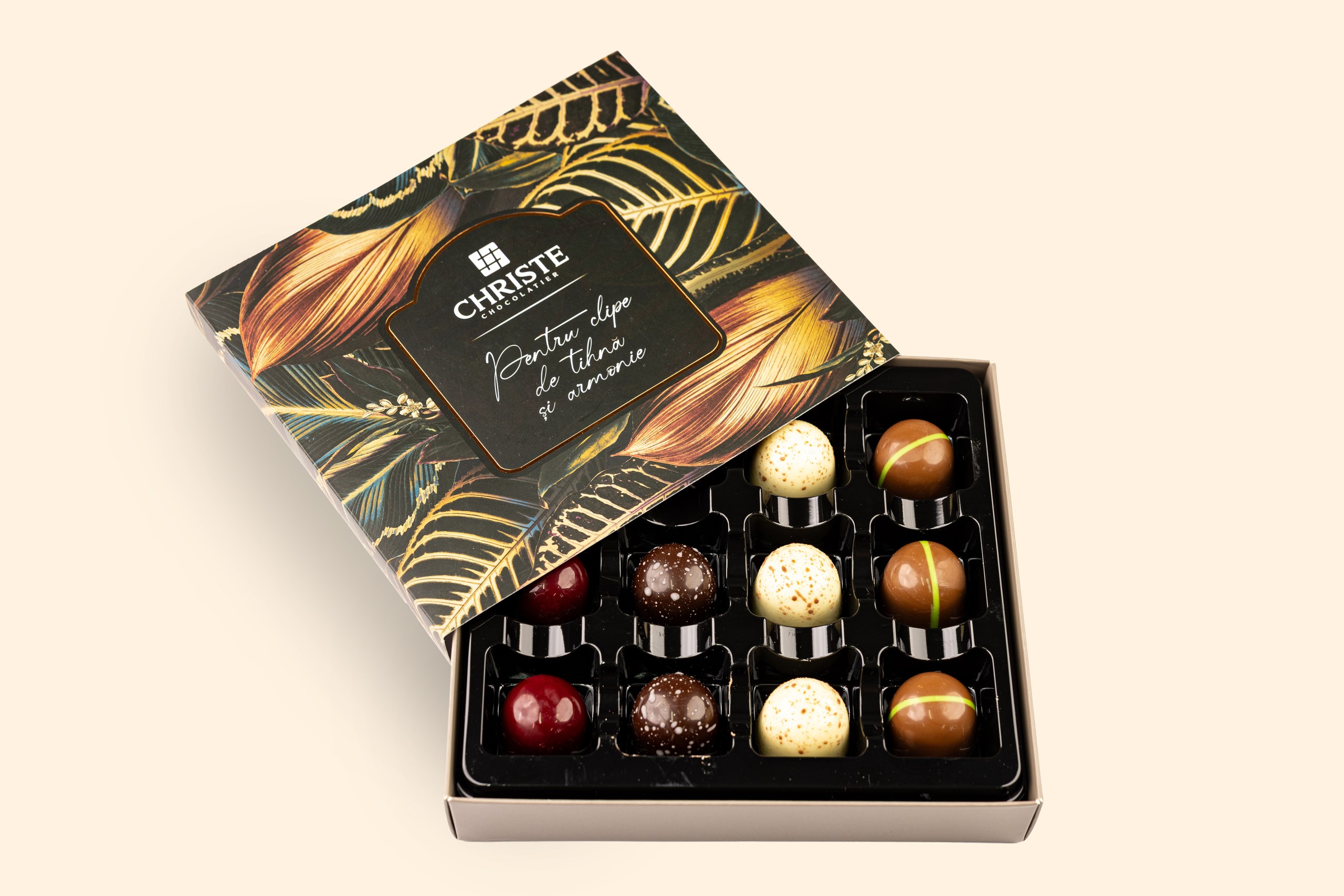 Cutie 12 praline ciocolată belgiană – Armonie (140g)